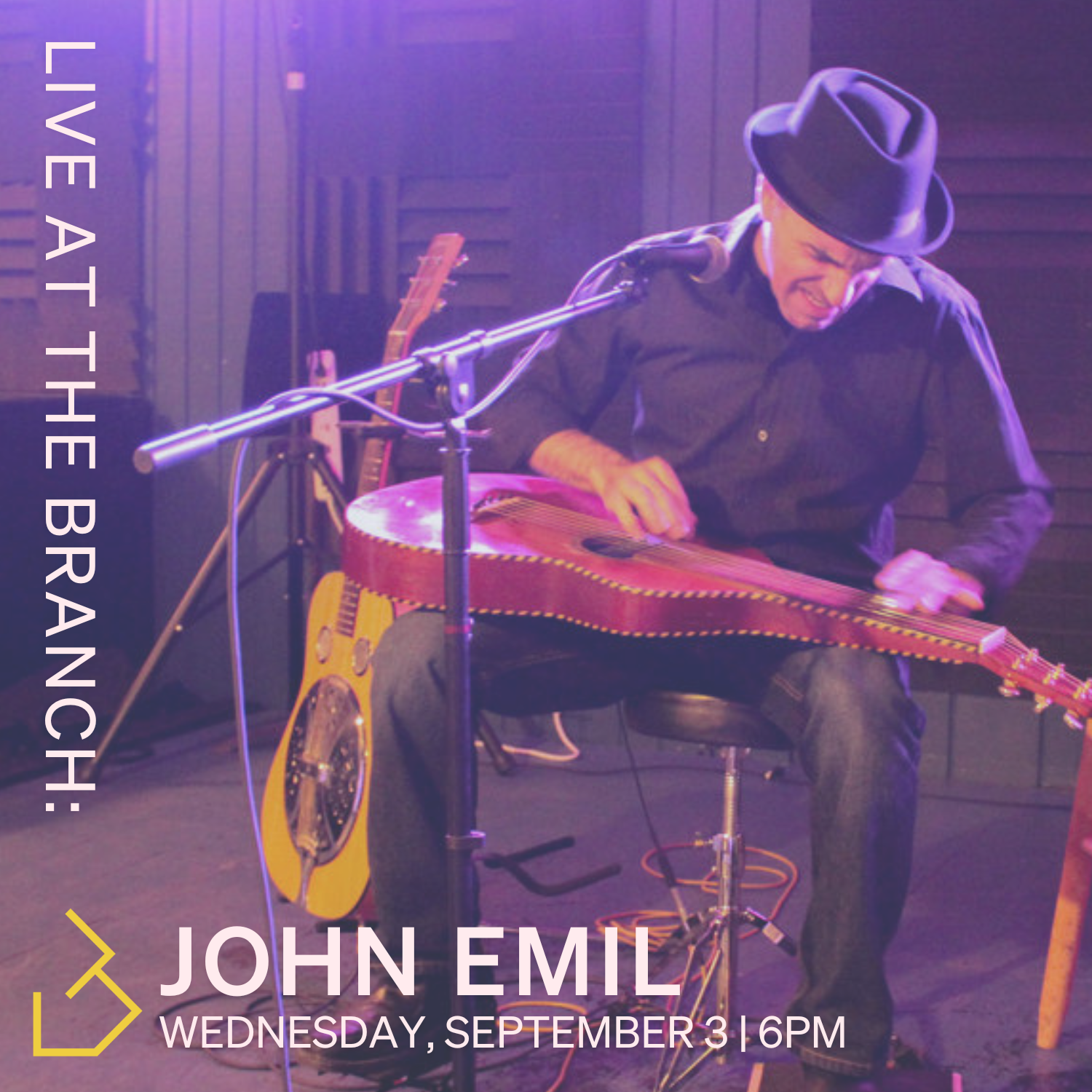 Purchase Tickets Here Join us at The Branch on Wednesday, September 3rd for a mini-concert featuring John Emil. John Emil, an accomplished singer/songwriter, guitarist, and a master of slide guitar, […]